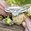 Forlovelsesring i hvitt gull med en Lab Grown diamant i 0.70 ct. Farge River (E) - VS2. Denne diamantringen med en lab-dyrket diamant i 0.70 karat og VS2-kvalitet er et mesterverk som kombinerer skjønnhet og bærekraft. Internasjonalt sertifikat fra IGI følger med.