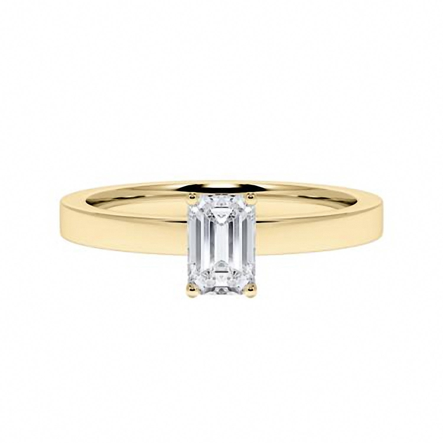 Oppdag vårt utvalg av laboratorie dyrkede diamantringer i smaragd form slip. Diamant er på 0.70 carat i strålende River – VS-kvalitet, og montert i en klassisk ring av 14 karat gult gull. Alle diamantene leveres med internasjonalt sertifikat fra IGI. Se video under beskrivelse.