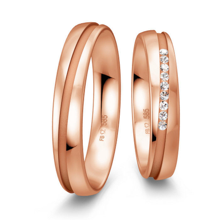Gifteringer fra Breuning rødt gull 14 kt, diam. 0.068 ct, 4 mm, 1.6 mm tykk. Kolleksjon Lounge. Se video lenger ned under beskrivelse.