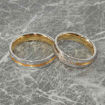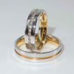 Disse ringene har en kombinasjon av gult og hvitt gull. Det hvite gullet er Rhodinert, dvs. det er lagt et tynt belegg utvendig for å få fargen så "hvit" som mulig.