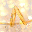 Forlovelsesringer - gifteringer fra Breuning i gult gull 14kt/585 i modell serie Basic LIGHT. Ringene har en bredde på 2.5 mm, 1.3 mm tykk. Dame ringen har 3 diamanter tilsammen i 0,017 ct i god kvalitet.