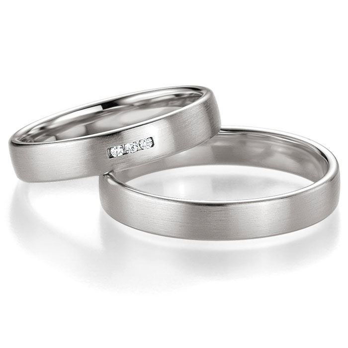 Forlovelsesringer - gifteringer fra Breuning i hvitt gull 14kt/585 i modell serie Profil Light. Ringene har en bredde på 4 mm, 1,4 mm tykk. Dame ringen har 3 diamant i 0,03 ct i god kvalitet.