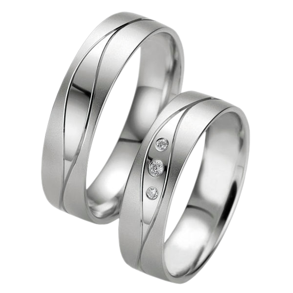 Forlovelsesringer - gifteringer fra Breuning i hvitt gull 14kt/585 i modell serie Smart line. Ringene har en bredde på 5,5 mm, 1,3 mm tykk. Dame ringen har 3 diamant i 0,017 ct i god kvalitet.