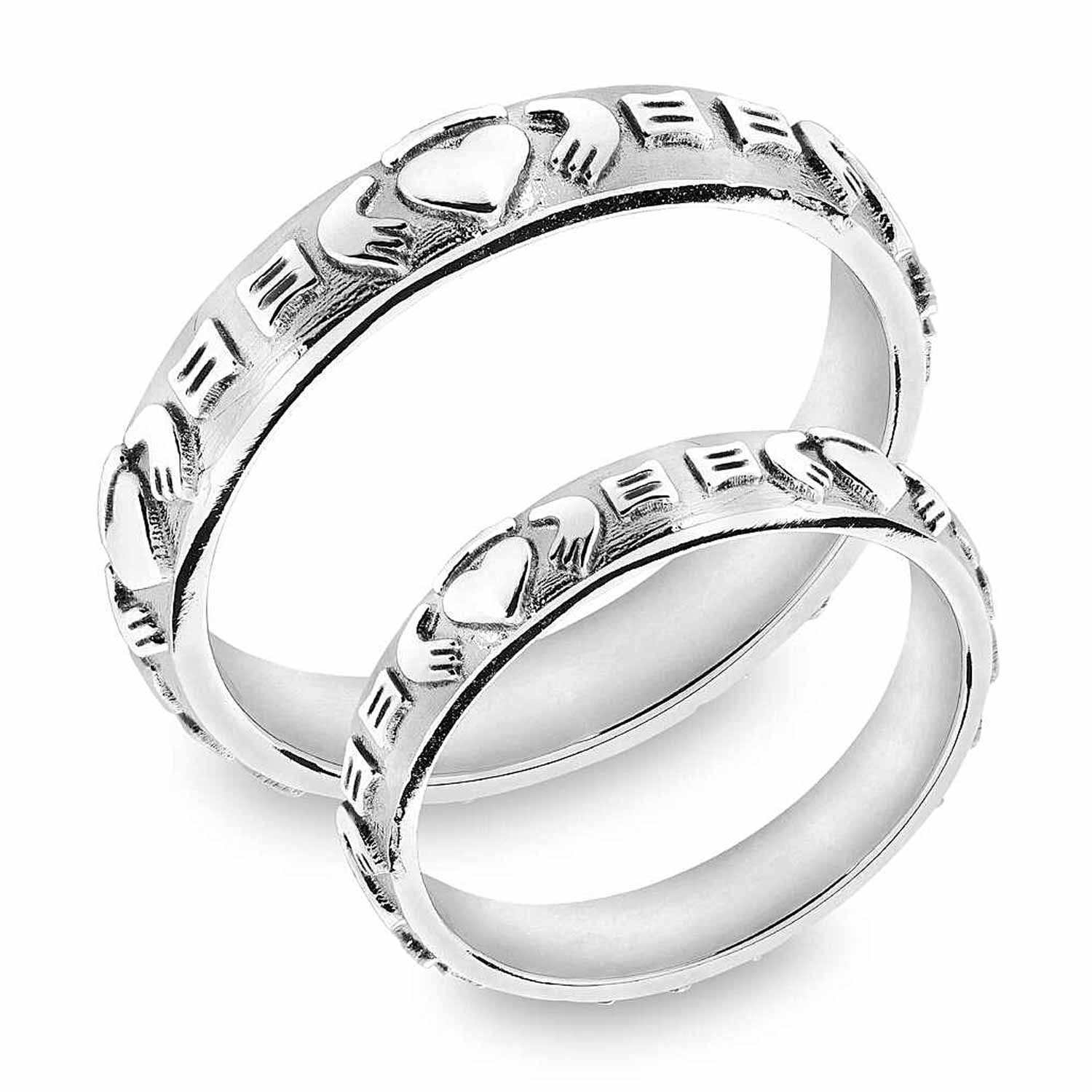 Forlovelsesringer - gifteringer fra Espeland, mønstret i hvitt gull 14kt/585, ringene har bredde 4 mm.Snorre forlovelsesringer gult og hvitt gull. Ringen, den ubrutte sirkel, er symbolet på evigheten, kontinuitet og uendelighet. Helt fra antikken er den brukt som forlovelses- og ekteskapssymbol.