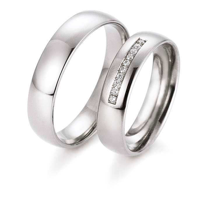Forlovelsesringer - gifteringer fra Gettmann i hvitt gull 9kt/375. Ringene har en bredde på 5 mm, 1,6 mm tykk. Dame ringen har 10 diamanter - 0,05 ct i god kvalitet.