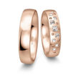 Forlovelsesringer - gifteringer fra Breuning i rosé gull 18kt/750 i modell serie LUXURY. Ringene har en bredde på 5 mm, 2,2 mm tykk. Dame ringen har 9 diamanter i tilsammen 0,335 ct i god kvalitet.