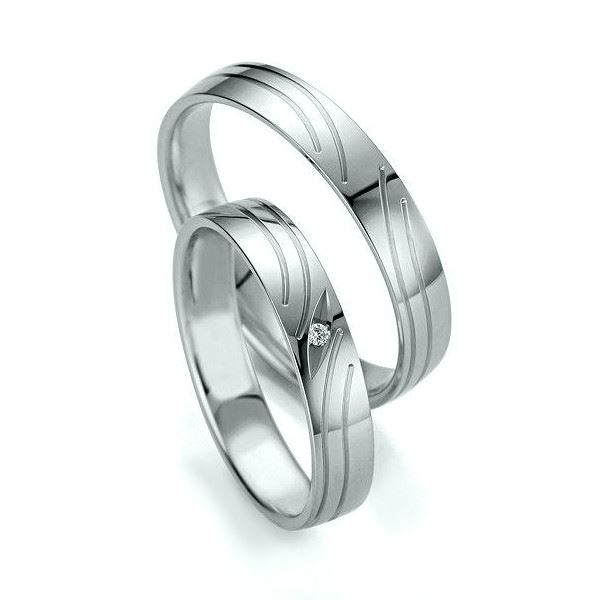Forlovelsesringer - gifteringer fra Breuning i palladium 950 i modell serie Slim line. Ringene har en bredde på 4 mm. Dame ringen har 1 diamant i 0,01 ct i god kvalitet.