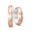 Forlovelsesringer - gifteringer fra Breuning i rødt & hvitt gull 14kt/585 i modell serie LOOP. Ringene har en bredde på 5 mm, 1.6 mm tykk. Dame ringen har 3 diamanter i tilsammen 0,023 ct i god kvalitet.
