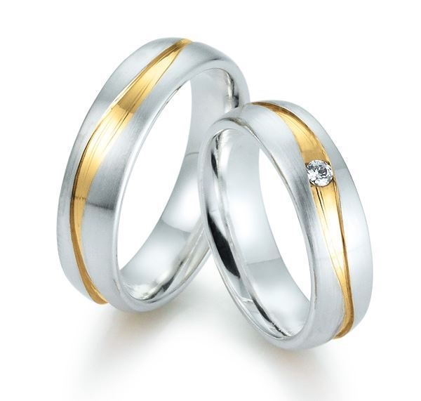 Forlovelsesringer - gifteringer fra GETTMANN i sølv med diamant .
