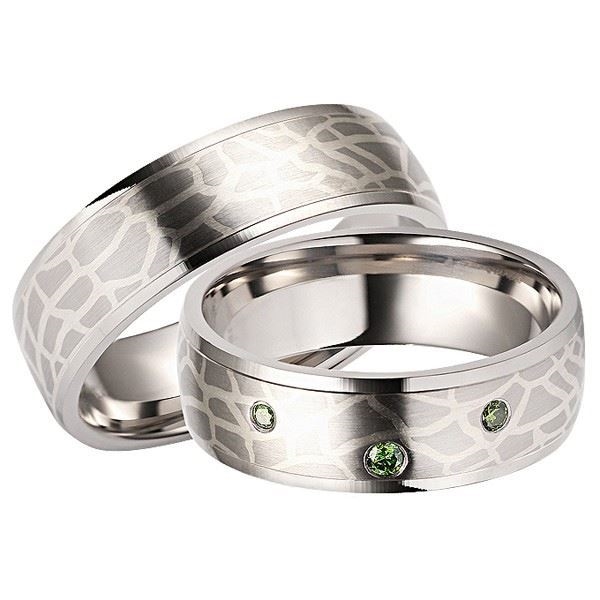 Dameringen har 2 diamanter på 0,15 ct og 1 diamant på 0,35 ct (tilsamen 0,65 ct). Kvaliteten er W-Si. Pris for paret "KROKODIL". Bredde 6,5 mm. Dameringer har vekt 8,13 gr, herreringer har vekt 8,13 gr. Herrering har varenummer 1051040. Damering har varenummer 1151040.
