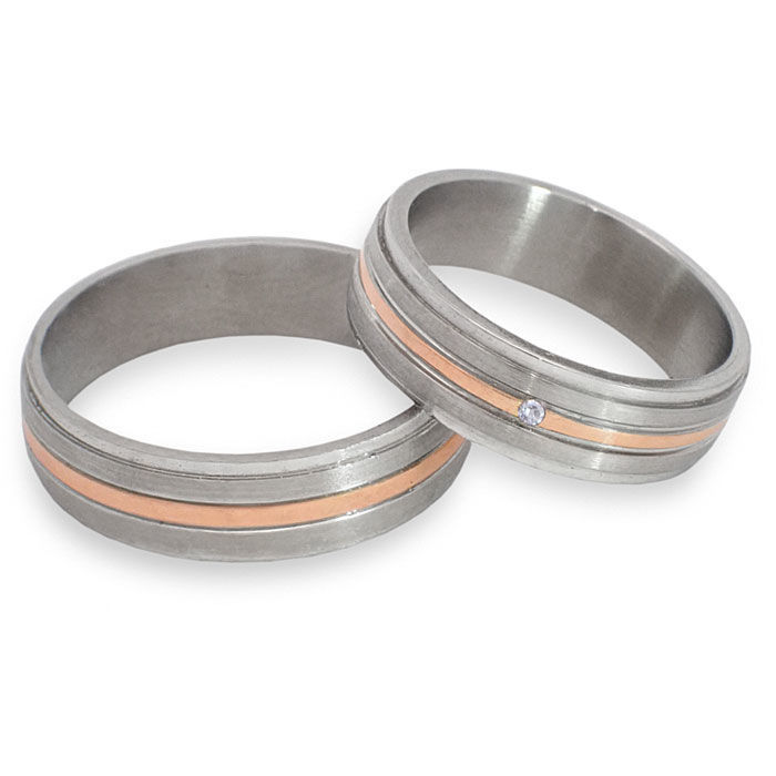 Gifteringer i stål & rødt gull, 6 mm. RAUSCHMAYER - 1160024
