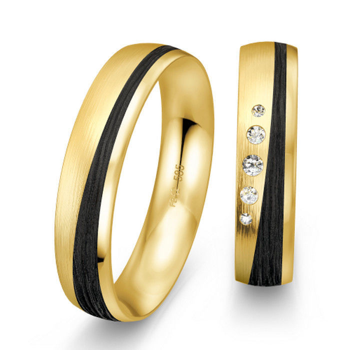 Forlovelsesringer - gifteringer fra Breuning i gult gull 14kt/585. CARBON.