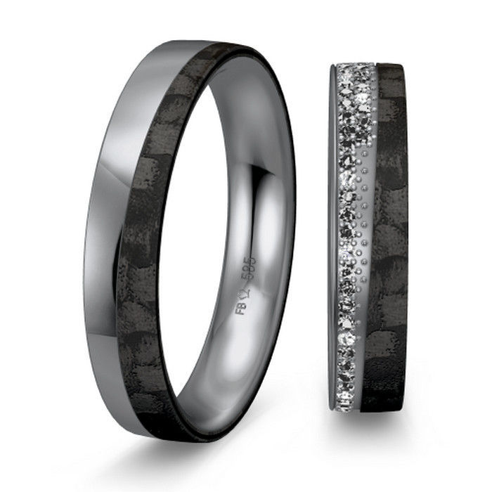 Forlovelsesringer - gifteringer fra Breuning i grått gull 14kt/585. CARBON STARS