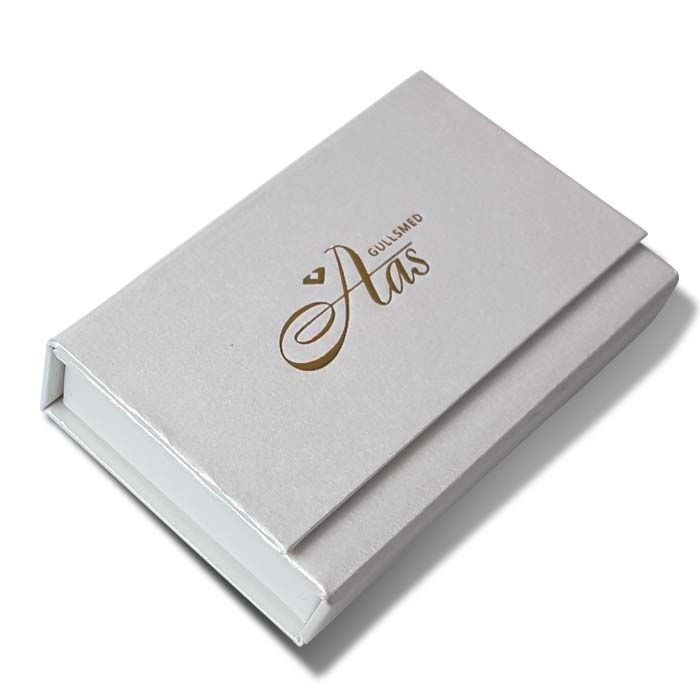 Med logo Gullsmed Aas. Denne esken følger med alle gifteringer over kr.6000,-