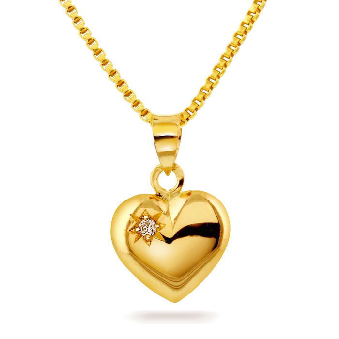 Gullhjerte stor med diamant 0,01ct, bredde 9 mm - 5701