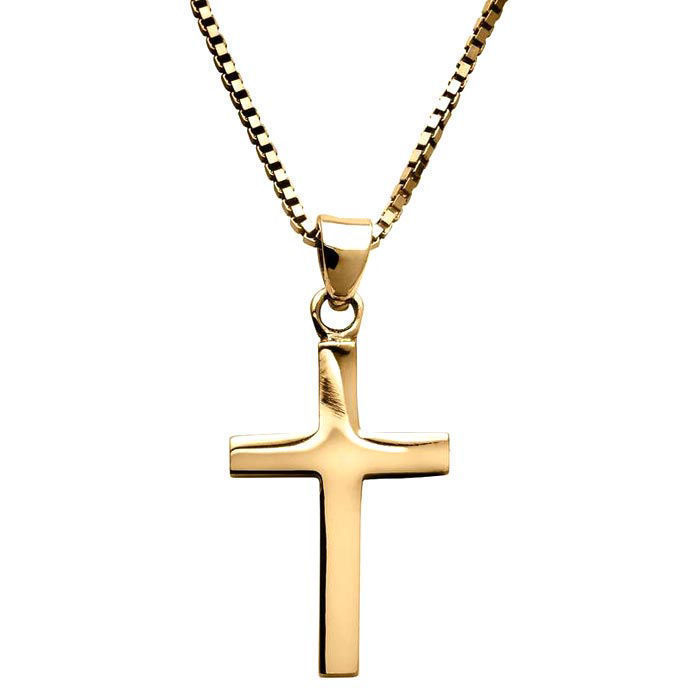 Smykke i gult gull, kors.  Anheng leveres uten kjede. Kjede er ikke inkludert i prisen, under menyen Sett & kjeder se utvalget av kjeder eller se nederst på denne siden.