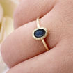 Skinnende ring i 14kt gull med en nydelig oval safir. Se video under beskrivelse.