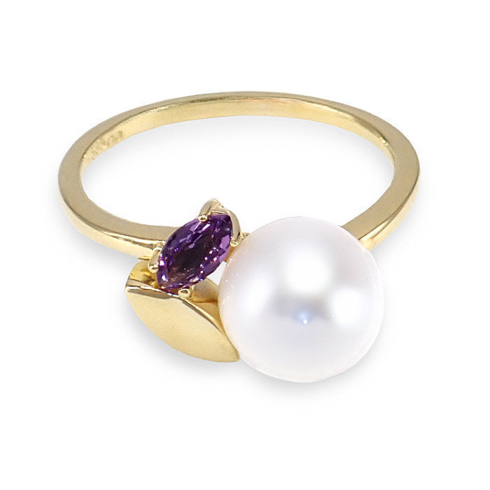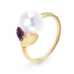 Gullring i 14 kt med ametyst og ferskvannperle - BUR511046