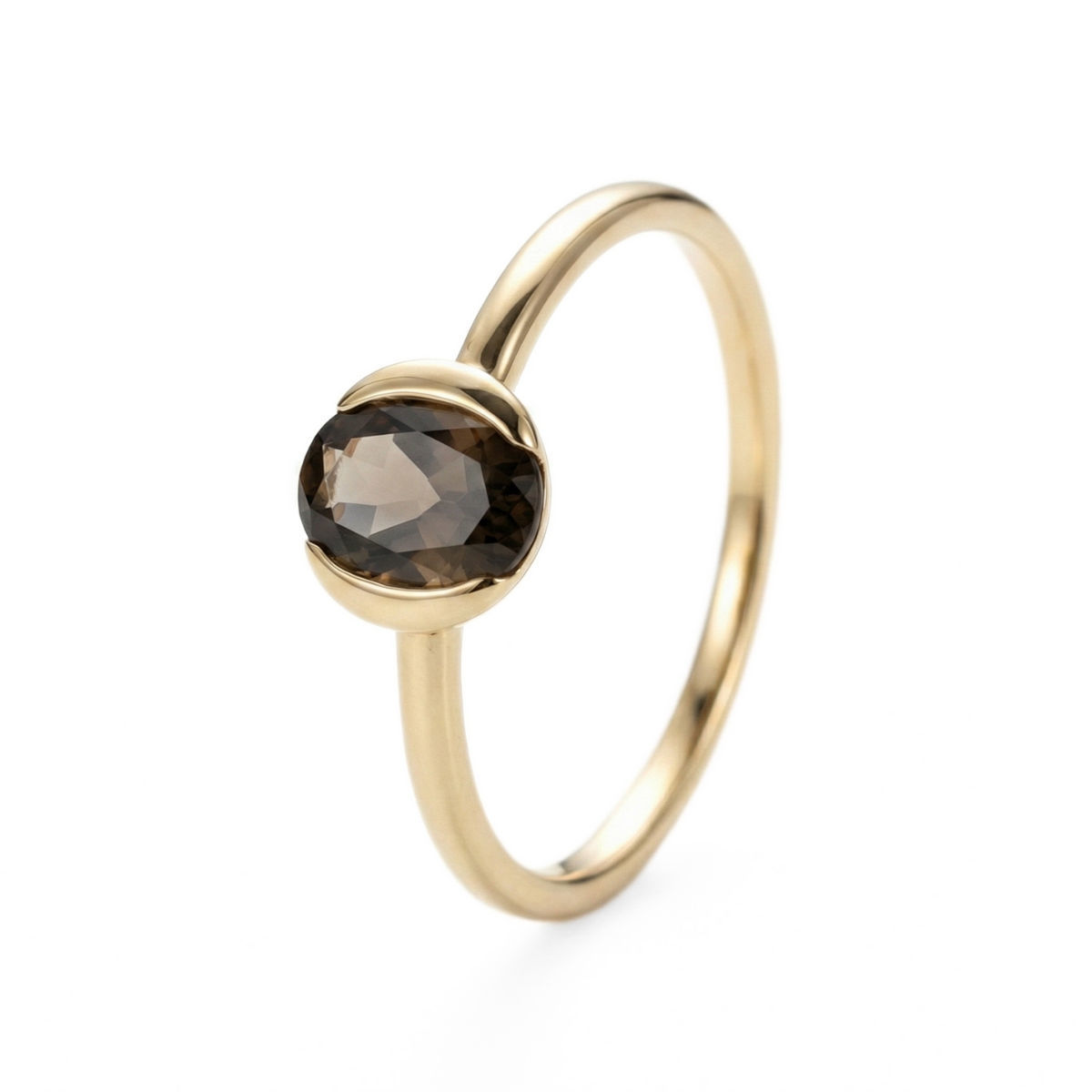 Gullring i 14kt/585 gult gull med røykkvarts i elegant innfatning. Klassisk og tidløs design – et eksklusivt smykke som passer perfekt til både hverdagsbruk og spesielle anledninger.Mer informasjon om: