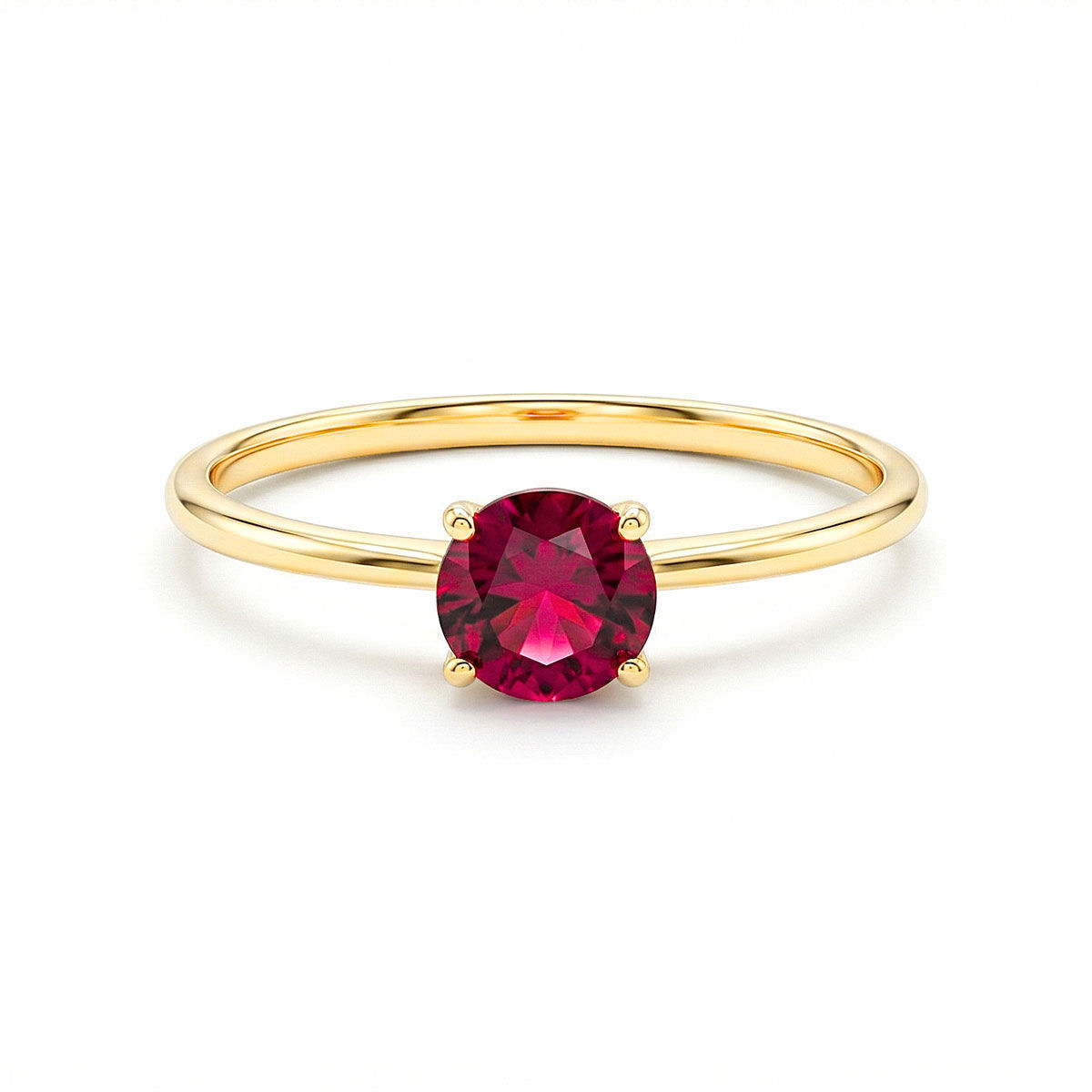 Diamantring i gult gull 14kt/585 med til sammen 0,14ct W-Si og rubin – lidenskapelig glans og klassisk luksus.
