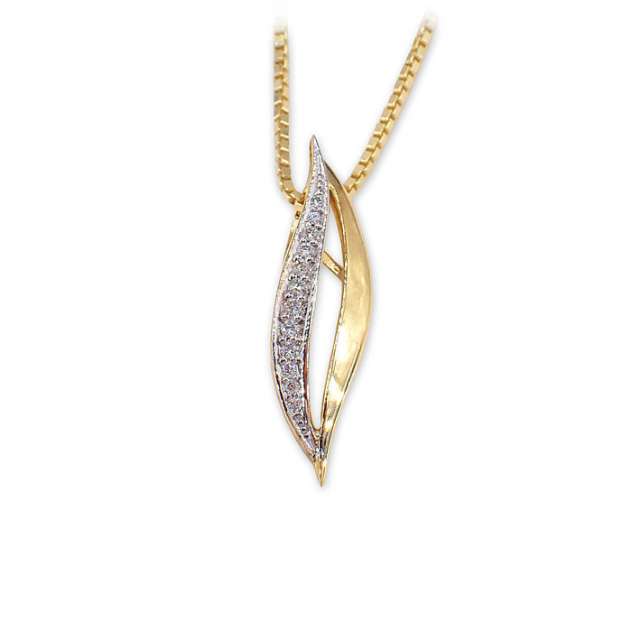 Gullsmykke Blad i 9kt gull med diamanter 0,06 ct W-Si - 233374