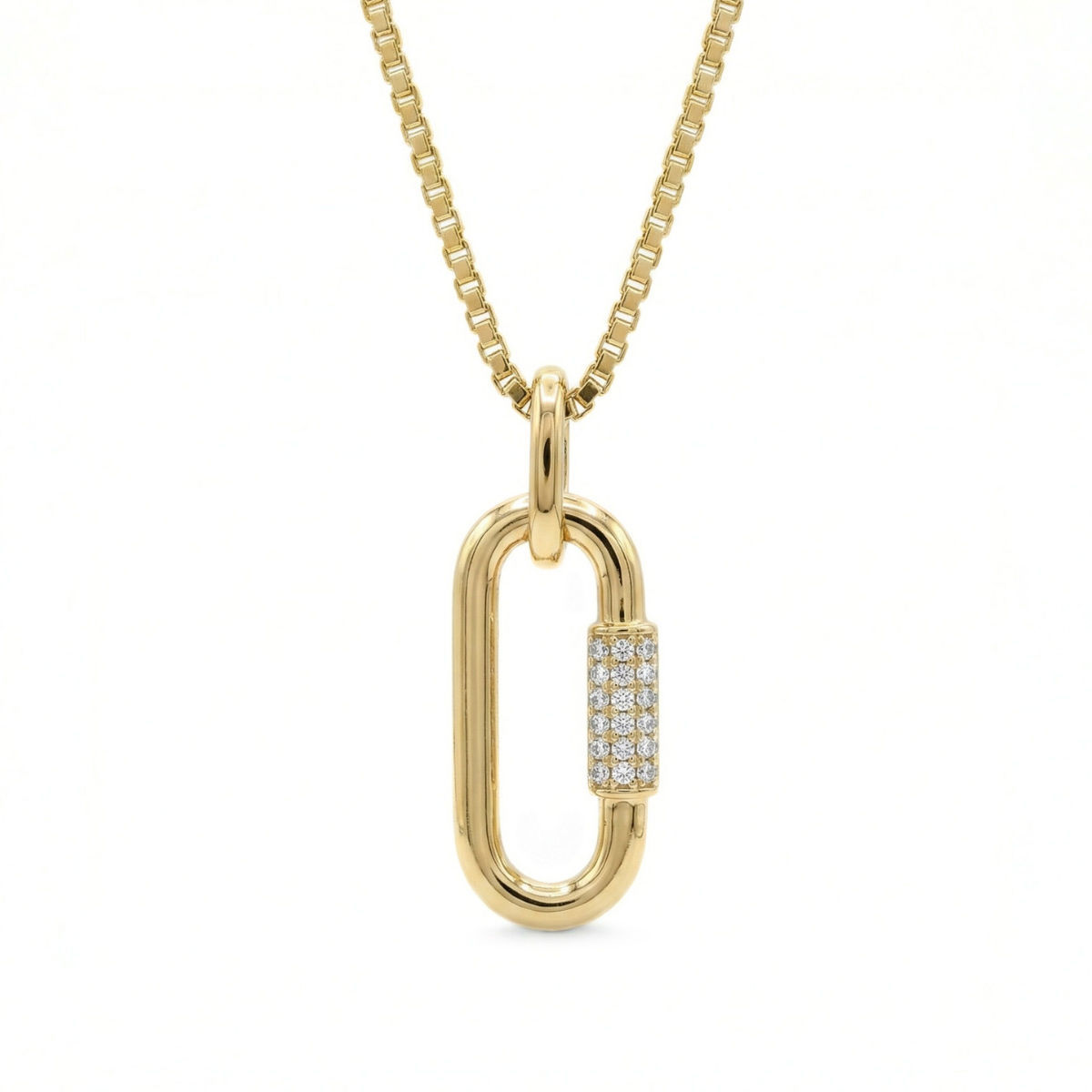 Dette eksklusive gullsmykket kombinerer klassisk luksus med moderne uttrykk. Den unike anhengsformen i polert gull er delikat utsmykket med glitrende zirkonia som gir et sofistikert og luksuriøst preg. Smykket henger på en elegant gullkjede og passer perfekt til både hverdagsbruk og festlige anledninger. Zirkoniaens klare glans fremhever gullens varme tone og gjør smykket til et tidløst valg – ideelt som gave til henne eller som et personlig smykke som setter prikken over i‑en på antrekket.