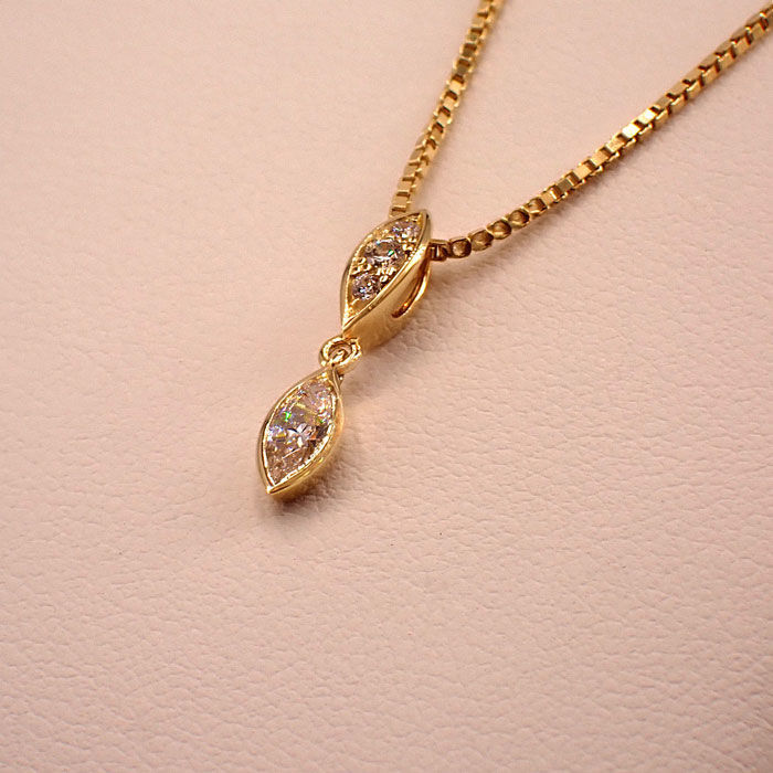 Gult gull 14kt/585 med zirkonia stener. Lengde 18 mm. Kjede er ikke inkludert i prisen.