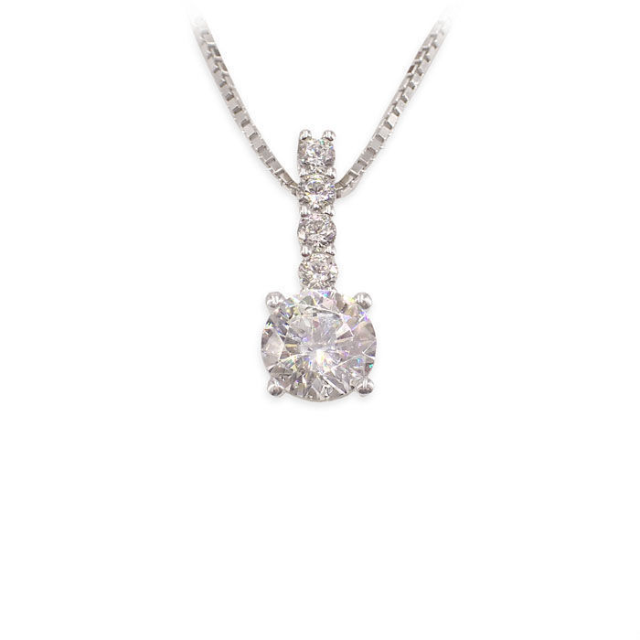 Gullsmykke i 14kt hvit gull med zirkonia Lengde 19 mm Uten kjede. Se utvalget av kjeder nedenfor.