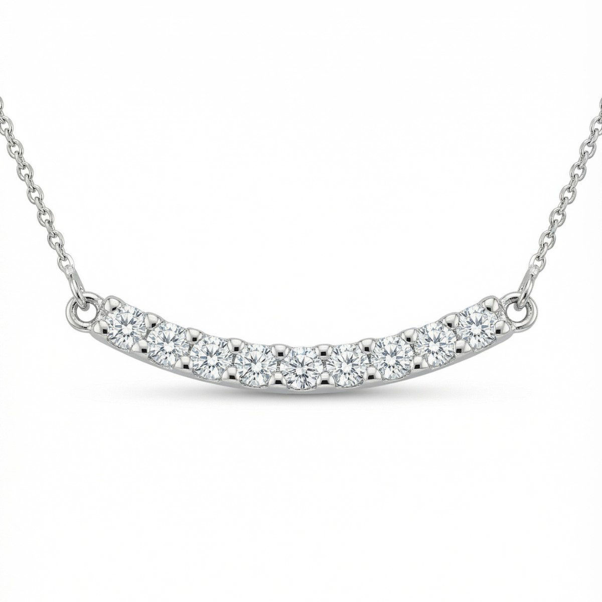Dette stilrene smykket fra Burkhardt & Bischoff i 14 karat hvitt gull har et moderne og feminint uttrykk. Den buede stangen er dekorert med klare zirkonia-steiner som gir et elegant glitrende preg. Smykket har en total lengde på 21 mm og er festet med en delikat hvittgullkjede på begge sider, noe som gir et harmonisk og balansert design.