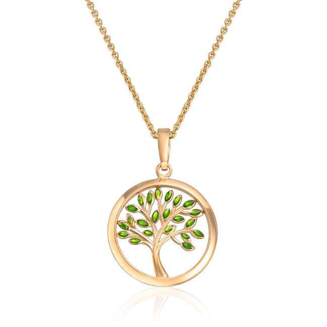 Gullsmykke Livets tre i 14kt gult gull og grønne zirkonia - 27514