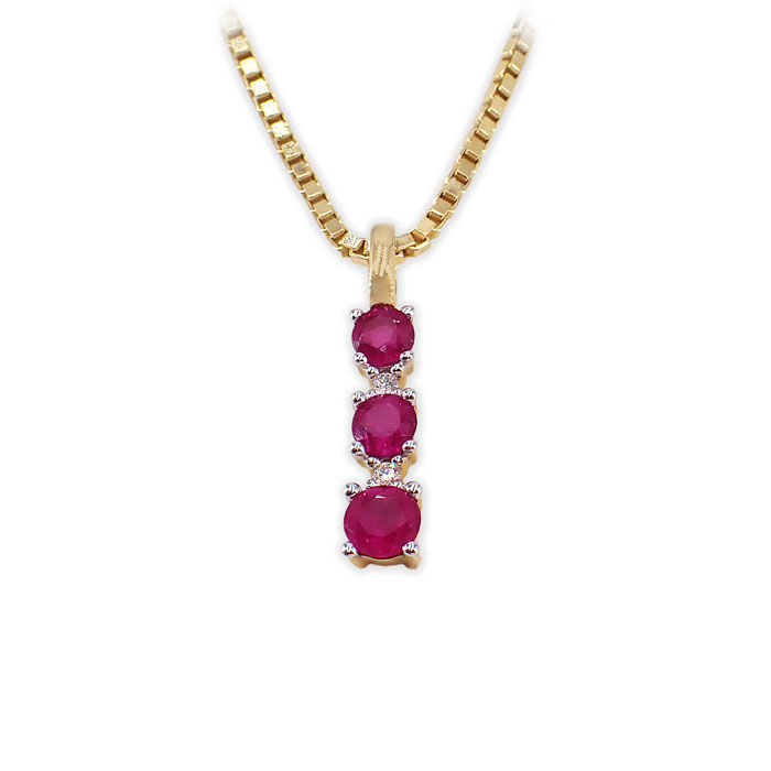 Gult gull 14kt/585 med rubiner stener og diamanter 0,01 W-P1. Kjede er ikke inkludert i prisen.