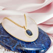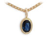 Gult gull 14kt/585 med safir. Høyde med hempe er 11 mm, bredde er 6 mm. Kjede er ikke inkludert i prisen. Se video under beskrivelse.