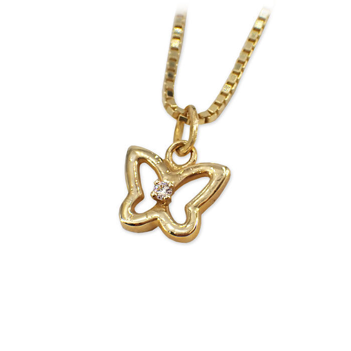 Gullsmykke Sommerfugl i 14 kt gull med zirkonia - 260125