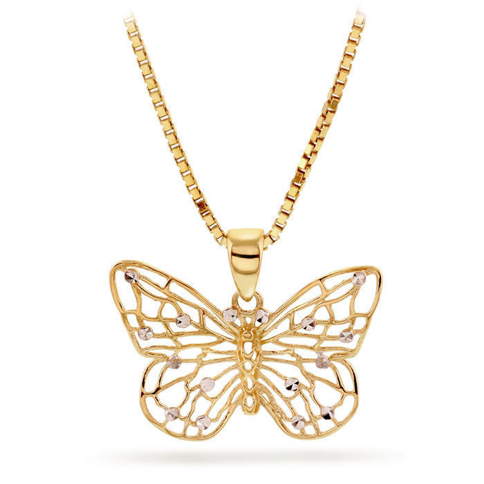 Gullsmykke Sommerfugl med zirkonia stener - 52668