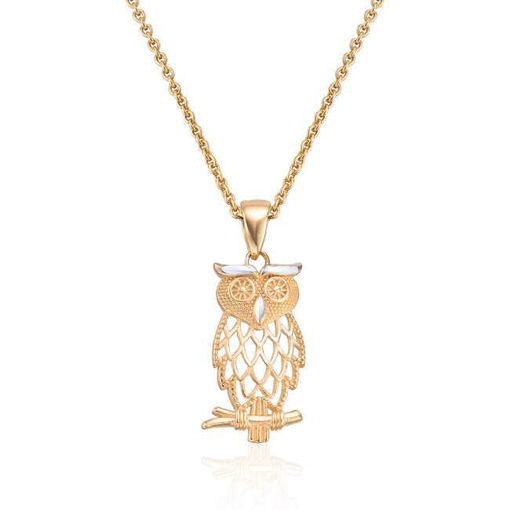Gullsmykke ugle i 14K gult gull med rhodinerte detaljer - 27515