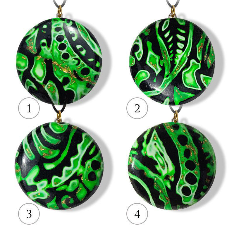 Norsk design og produksjon. 4 varianter, velg variant, pris pr 1 stk.Snor med lås ikke inkludert i prisen. Velg lengde på snor eller på kjede. Hvis du trenger en annen lengde på snor, kryss av smykke forlenger. Overflaten er polert og lakkert. Diameter er 38 mm, tykkelse 3 mm. Alle smykker er unike, finnes kun 1 stk av hver. Se i beskrivelsen nede hvordan smykke ble laget.