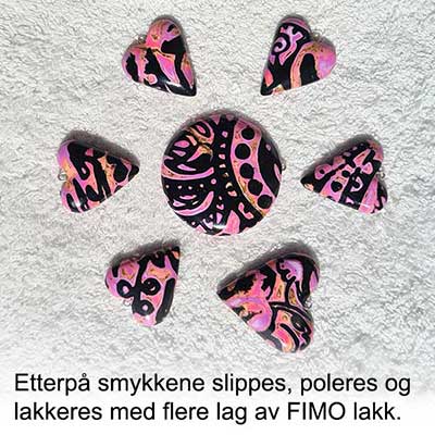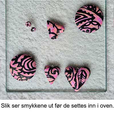 Denne  smykke er håndlaget i Norge av kunstige materialer med bruk av denne metoden.