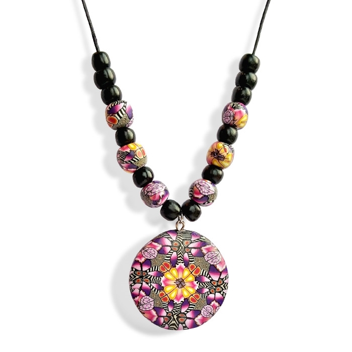 Smykke laget i Milefiori teknikk. På italiensk betyr Milefiori 1000 blomster.Blir ofte brukt for å pryde glassgjenstander med mønster. Tynne skiver av glass blir smeltet sammen for å danne mønster I selve glasset. Denne teknikken kan også benyttes med andre materialer. Metoden er kjent fra gammel tid i Egypt og Romerikket, var spesielt populært i Venezia på 1500 tallet.