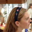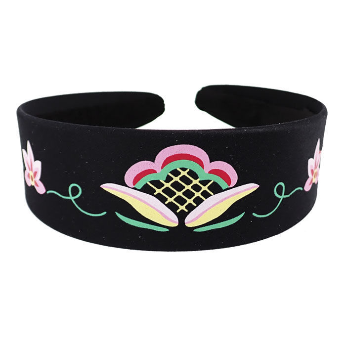 Silketrykt hårbøyle trukket i myk tekstil med god passform (strammer ikke)