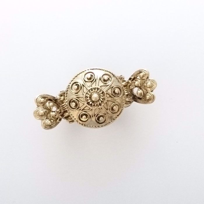 Nydelig hårpynt "Hedda" med nydelig rosett og kruse i midten - en hårklype som passer de fleste bunader i forgylt sølv. Hårklypen er rett og slett helt nydelig til både hverdagsantrekk og selvsagt kronen på verket til bunaden. Dette er et "must have" til liten og stor. Denne hårpynten finst også i en større variant.