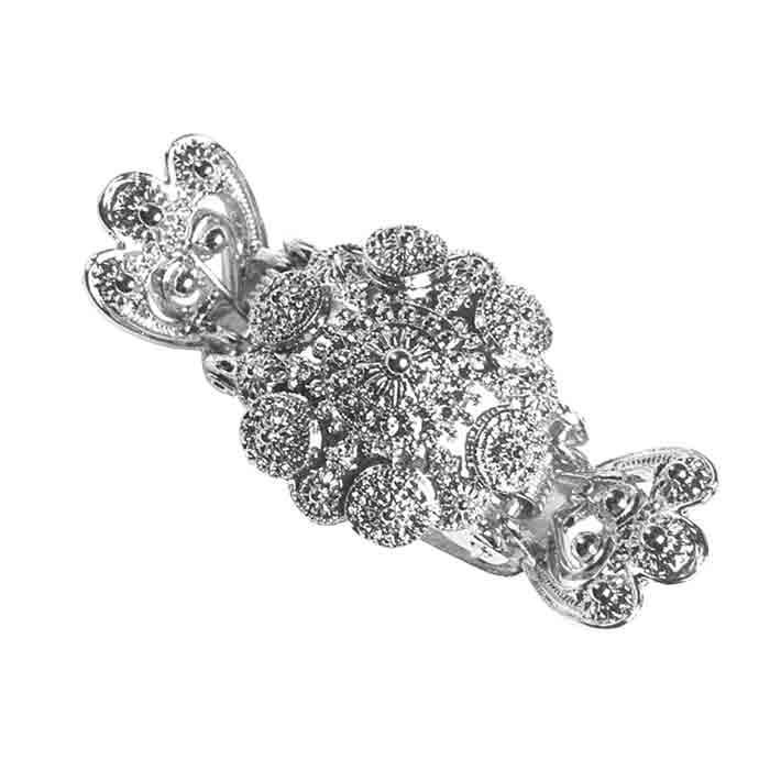 Elegant hårklype i kvitt sølv. Lekkert design som pyntar opp håret på eit blunk og held det på plass. Ei praktfull gåve til store og små jenter. Finst også i ein mindre storleik.