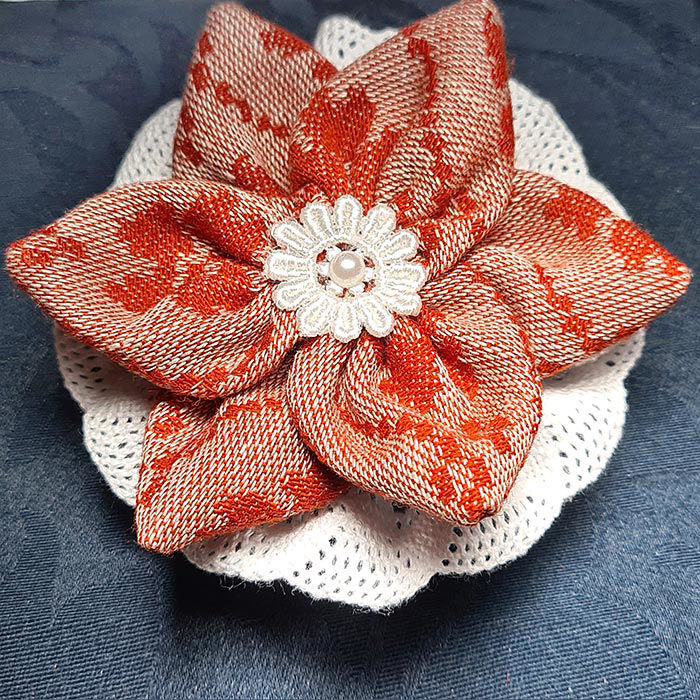Håndlaget hårpynt, hårspenne til trønderbunad & fest, diameter 7 cm. Hårspenne laget av original stoff til bunad.