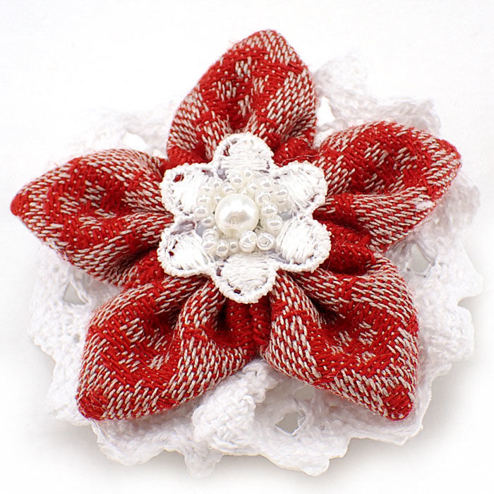 Hårspenne til trønderbunad og fest, med blånde, rød - 310827