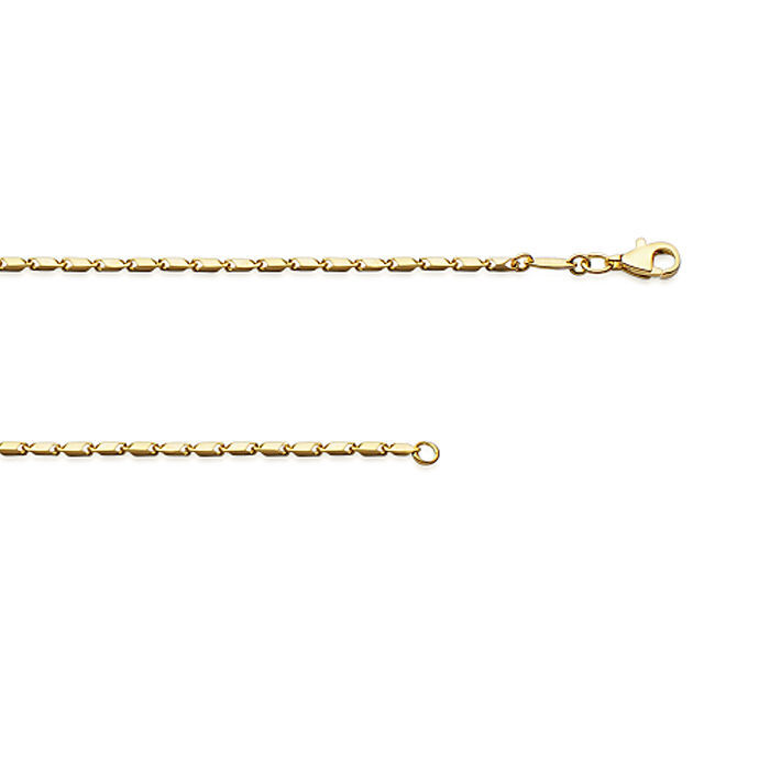 Hvert ledd i dette gull kjedet er nøye utformet for å gi en tidløs eleganse som komplementerer enhver anledning. Den gyldne glansen fra det 18 karat gullet gir kjedet en varm og innbydende glød, og det er den perfekte aksenten for enhver antrekk.