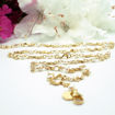 Halskæde i forgyldt sterling sølv med små rhumba vedhæng & 3 mm. hvide ferskvandsperler.