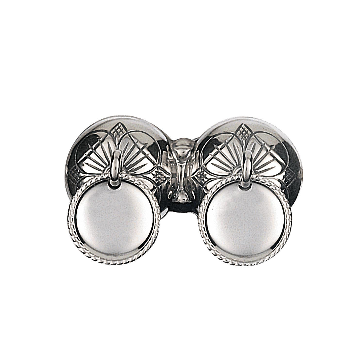 Barnesølv til gut. Halsknapp i oksidert sølv med firkløverdekor og trådkantlauv. Ei flott og kjær gåve til ein liten gut i bunad.