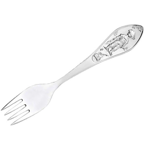 Barnegaffelen er en del av serien Hans og Grete. I denne serien finnes det mange produkter, blant annet sølvbestikk (babyskje, kniv, skje, gaffel) krus og tallerken i sølv, porselen, smykkeskrin, fotorammer og album. Serien er designet av vår designer Oddny H. Møyland. Barnegaffelen er produsert i Norge, i EIKs lokaler utenfor Tønsberg. Alle våre produkter leveres i flotte gaveesker. Barnegaffelen er produsert i ekte sølv, i kvalitet 925. Størrelse: Lengde: 14,5 cm.
