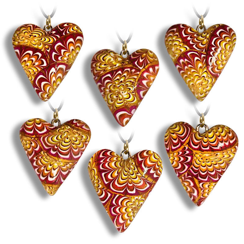 Norsk design og produksjon. Snor med lås ikke inkludert i prisen. Velg snor eller sølv kjede. Smykke i Millefiori teknikk, burgunder og oransje, 6 varianter, pris pr 1 stk. Krysantemum mønster er på 1 side. Hvis du trenger en annen lengde på snor, velg smykke forlenger i kategori Tilbehør. Overflaten er blank, slippet og lakkert.. Størrelse 2,5x2,3 cm, tykkelse 3 mm. Mønstrer er litt forskjellige på smykker, velg variant. Se i beskrivelsen nede hvordan smykke ble laget.