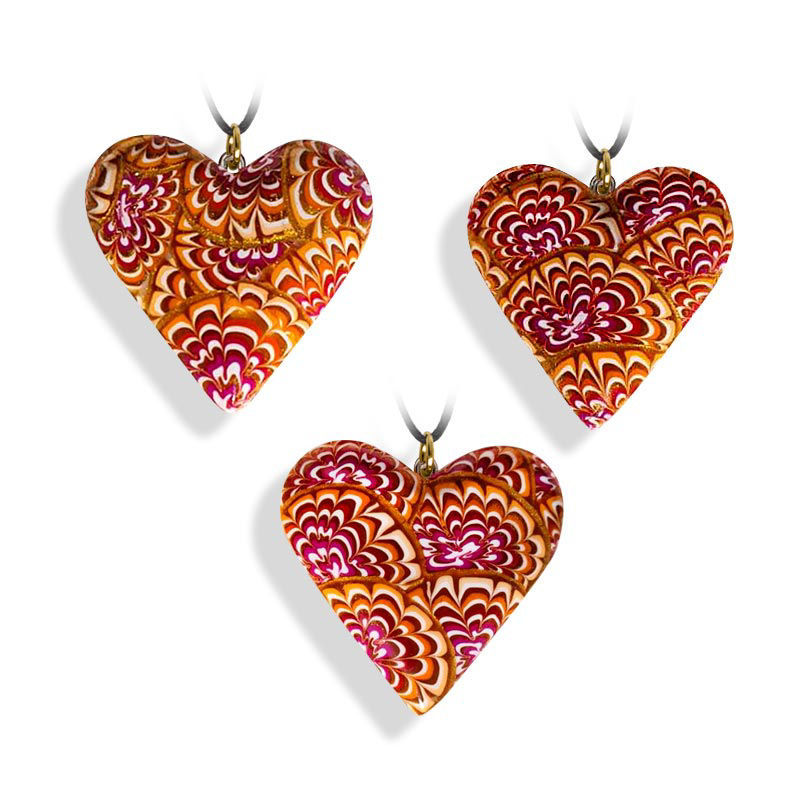Hjertesmykke Krysantemum, rød&oransje, 34x34 mm -28020726