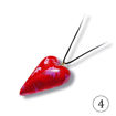 4 varianter, velg variant. Norsk design og produksjon. Rød mønster er på en side. Smykke har størrelse ca 2,5x2,3 cm, tykkelse 3 mm, håndlaget. Snor med lås ikke inkludert i prisen. Velg snor eller sølv kjede. Overflaten er blank, polert og lakkert. Alle smykker er unike, finnes kun 1 stk av hver. Se i beskrivelsen nede hvordan smykke ble laget.